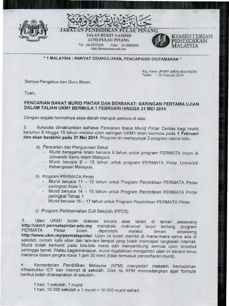 Web Projek Permata Pintar is yet another effort to cultivate good thinking skills amongst a selected group of students. Namun begitu hannah mampu buat few questions jer dalam ujian ukm 1 satu tuh. Web BANGI Kementerian Pendidikan KPM telah memaklumkan Pencarian Murid Pintar dan Berbakat UKM1 tahun 2022 sudah mula dijalankan sejak awal Februari lepas.